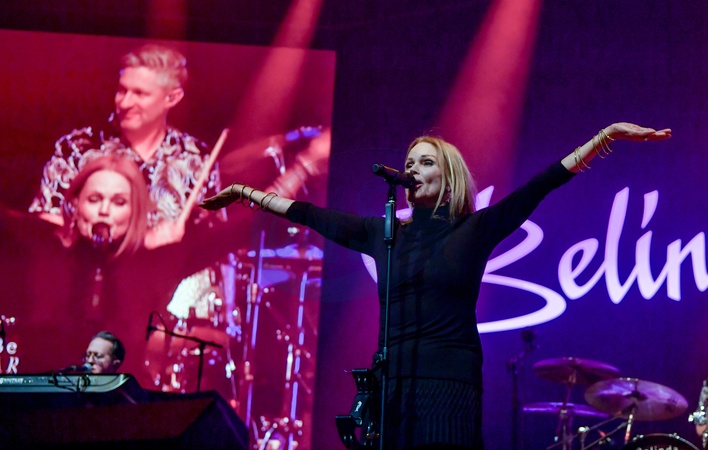Belinda Carlisle supporting Rick Astley pictured on stage in the Resorts World Arena during his 2024 tour, Birmingham, 01/03/2024