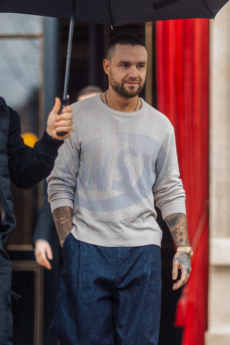 Liam Payne i jego partnerka Kate Cassidy przybywają do hotelu La Réserve podczas pokazu mody damskiej jesień/zima 2024–2025 podczas Tygodnia Mody w Paryżu