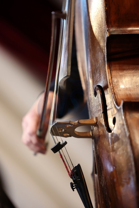 IVANO-FRANKIVSK, UKRAINE - MARCH 2, 2024 - A cello with a bow is pictured close up during the Prykarpattia Spring 2024 Festival at the Ira Malaniuk Ivano-Frankivsk Regional Philharmonic, Ivano-Frankivsk, western Ukraine., Credit:Yurii Rylchuk / Avalon