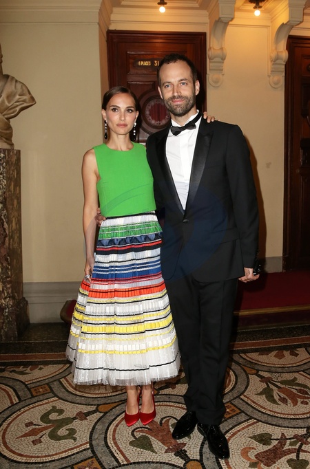 Info du 8 mars 2024 - Natalie Portman et Benjamin Millepied sont officiellement divorcés - Natalie Portman (chaussures Dior, robe Dior Haute Couture) et son mari Benjamin Millepied - Gala d'ouverture de la saison du Ballet de l'Opéra national de Paris, le 24 septembre 2015. Ballet National de Paris Opening Season Gala at Opera Garnier on September 24th, 2015 in Paris, France.