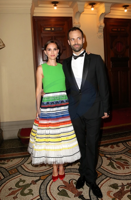 Info du 8 mars 2024 - Natalie Portman et Benjamin Millepied sont officiellement divorcés - Natalie Portman (chaussures Dior, robe Dior Haute Couture) et son mari Benjamin Millepied - Gala d'ouverture de la saison du Ballet de l'Opéra national de Paris, le 24 septembre 2015. Ballet National de Paris Opening Season Gala at Opera Garnier on September 24th, 2015 in Paris, France.