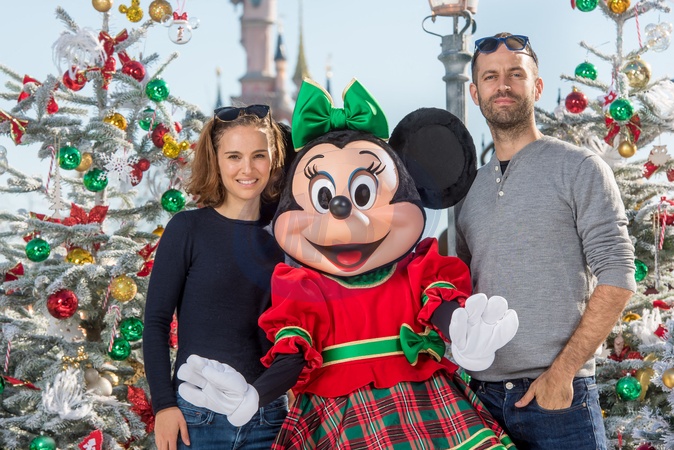 Info du 8 mars 2024 - Natalie Portman et Benjamin Millepied sont officiellement divorcés - Archive - 2015 - Natalie Portman et son mari Benjamin Millepied se mettent dans l'esprit des Fêtes avec Minnie à Disneyland Paris, le 31 octobre 2015. Si Disneyland Paris a déjà fait rêver 375 millions de visiteurs, c'est aussi le cas de nombreuses célébrités françaises et internationales dont la présence ponctue la vie et les célébrations du Parc depuis son ouverture le 12 Avril 1992. Qu'elles soient issues du monde de la musique, du sport, du cinéma ou de la mode, les personnalités les plus emblématiques contribuent à écrire l'histoire de Disneyland Paris depuis 30 ans. © Disney via Bestimage File - 2015 - Natalie Portman & Benjamin Millepied getting into the Holiday spirit with Minnie.