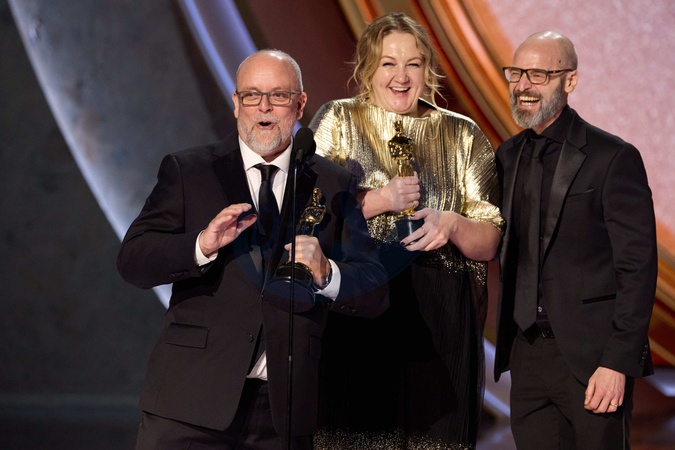 Mark Coulier, Nadia Stacey and Josh Weston accept the Oscar® for Makeup and Hairstyling during the live ABC telecast of the 96th Oscars® at the Dolby® Theatre at Ovation Hollywood on Sunday, March 10, 2024., Credit:Avalon.red / Avalon