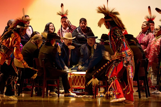 The Osage Tribal Singers and Dancers perform onstage during the live ABC telecast of the 96th Oscars® at the Dolby® Theatre at Ovation Hollywood on Sunday, March 10, 2024., Credit:Avalon.red / Avalon