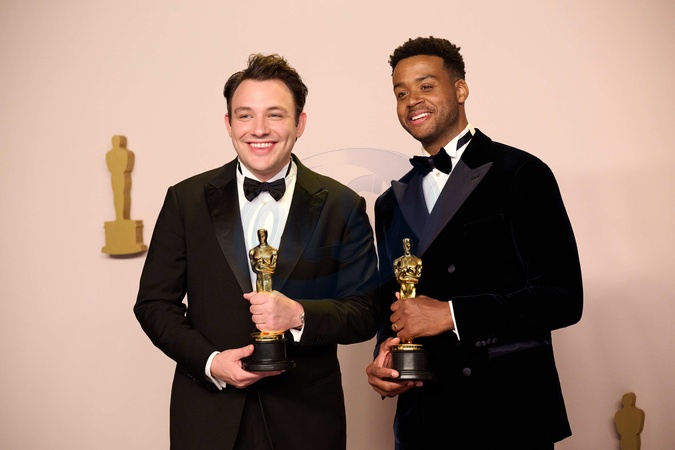 Ben Proudfoot and Kris Bowers pose backstage with the Oscar® for Documentary Short Film during the live ABC telecast of the 96th Oscars® at Dolby® Theatre at Ovation Hollywood on Sunday, March 10, 2024., Credit:MS / Avalon
