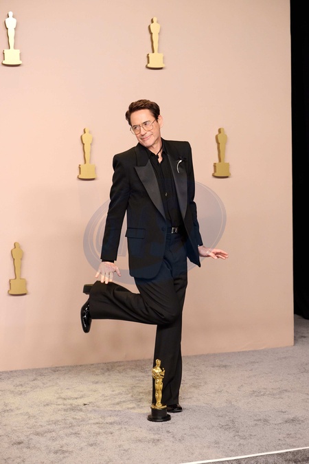 Robert Downey Jr. poses with his Oscar backstage at the 96th Oscars® at the Dolby® Theatre at Ovation Hollywood on Sunday, March 10, 2024., Credit:Michael Baker / Avalon