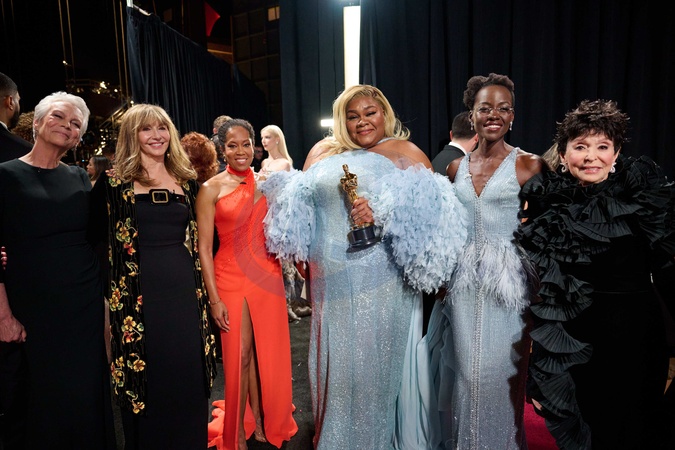Jamie Lee Curtis, Mary Steenburgen, Regina King, Oscar® winner Da'Vine Joy Randolph, Lupita Nyong'o and Rita Moreno pose backstage with the Oscar® for Actress in a Supporting Role during the live ABC telecast of the 96th Oscars® at Dolby® Theatre at Ovation Hollywood on Sunday, March 10, 2024., Credit:Richard Harbaugh ©A.M.P.A.S. / Avalon