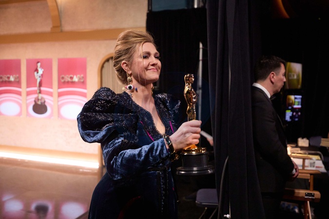 Holly Waddington poses backstage with the Oscar® for Costume Design during the live ABC telecast of the 96th Oscars® at Dolby® Theatre at Ovation Hollywood on Sunday, March 10, 2024., Credit:Al Seib / Avalon