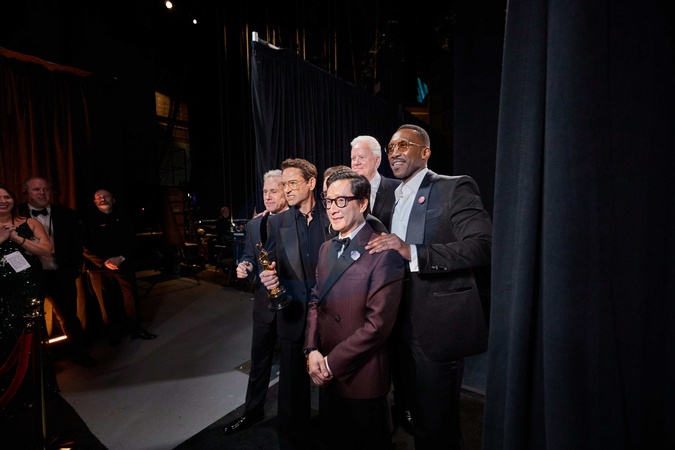 Sam Rockwell, Tim Robbins, Ke Huy Quan, Christoph Waltz, Mahershala Ali and Robert Downey, Jr. pose backstage with the Oscar® for Actor in a Supporting Role during the live ABC telecast of the 96th Oscars® at Dolby® Theatre at Ovation Hollywood on Sunday, March 10, 2024., Credit:Al Seib / Avalon
