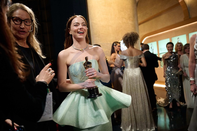 Emma Stone backstage with the Oscar® for Actress in a Leading Role during the live ABC telecast of the 96th Oscars® at Dolby® Theatre at Ovation Hollywood on Sunday, March 10, 2024., Credit:SRS / Avalon