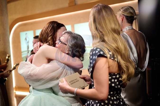 Emma Stone backstage with Sally Field, Jennifer Lawrence, Charlize Theron, Michelle Yeoh, and Jessica Lange after winning the Oscar® for Actress in a Leading Role during the live ABC telecast of the 96th Oscars® at Dolby® Theatre at Ovation Hollywood on Sunday, March 10, 2024., Credit:Richard Harbaugh / Avalon