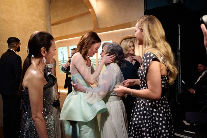 Emma Stone backstage with Sally Field, Jennifer Lawrence, Charlize Theron, Michelle Yeoh, and Jessica Lange after winning the Oscar® for Actress in a Leading Role during the live ABC telecast of the 96th Oscars® at Dolby® Theatre at Ovation Hollywood on Sunday, March 10, 2024., Credit:Richard Harbaugh / Avalon