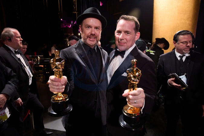 Tarn Willers and Johnnie Burn pose backstage with the Oscar® for Sound during the live ABC telecast of the 96th Oscars® at Dolby® Theatre at Ovation Hollywood on Sunday, March 10, 2024., Credit:AL / Avalon