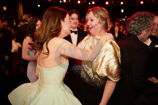 Emma Stone hugs Nadia Stacey with the Oscar® for Makeup and Hairstyling during the live ABC telecast of the 96th Oscars® at the Dolby® Theatre at Ovation Hollywood on Sunday, March 10, 2024., Credit:sb / Avalon