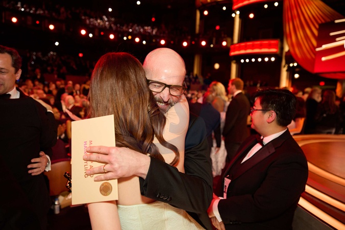 Emma Stone hugs Josh Weston with the Oscar® for Makeup and Hairstyling during the live ABC telecast of the 96th Oscars® at the Dolby® Theatre at Ovation Hollywood on Sunday, March 10, 2024., Credit:sb / Avalon