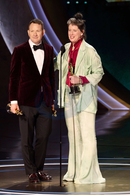 James Price and Shona Heath accept the Oscar® for Production Design during the live ABC telecast of the 96th Oscars® at the Dolby® Theatre at Ovation Hollywood on Sunday, March 10, 2024., Credit:Avalon.red / Avalon