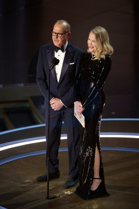 Michael Keaton and Catherine O'Hara present the Oscar® for Makeup and Hairstyling during the live ABC telecast of the 96th Oscars® at the Dolby® Theatre at Ovation Hollywood on Sunday, March 10, 2024., Credit:Avalon.red / Avalon