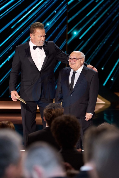 Arnold Schwarzenegger and Danny DeVito presents the Oscar® for Visual Effects during the live ABC telecast of the 96th Oscars® at the Dolby® Theatre at Ovation Hollywood on Sunday, March 10, 2024., Credit:Avalon.red / Avalon