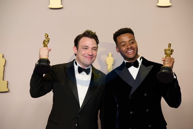 Ben Proudfoot and Kris Bowers pose backstage with the Oscar® for Documentary Short Film during the live ABC telecast of the 96th Oscars® at Dolby® Theatre at Ovation Hollywood on Sunday, March 10, 2024., Credit:Avalon.red / Avalon