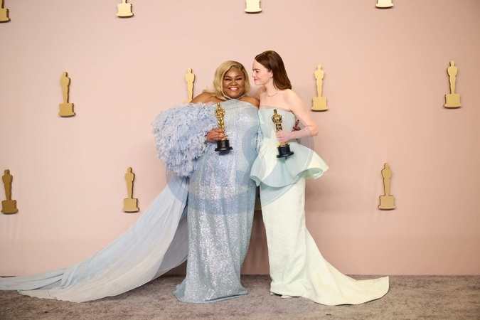 Da'Vine Joy Randolph and Emma Stone pose backstage with the Oscar® for Actress in a Supporting Role and the Oscar® for Actress in a Leading Role during the live ABC telecast of the 96th Oscars® at Dolby® Theatre at Ovation Hollywood on Sunday, March 10, 2024., Credit:Avalon.red / Avalon