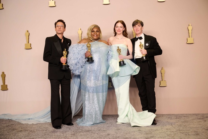 Robert Downey, Jr., Da'Vine Joy Randolph, Emma Stone, and Cillian Murphy pose backstage with the Oscar® for Actor/Actress in a Supporting Role and the Oscar® for Actor/Actress in a Leading Role during the live ABC telecast of the 96th Oscars® at Dolby® Theatre at Ovation Hollywood on Sunday, March 10, 2024., Credit:Avalon.red / Avalon