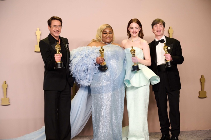 Robert Downey, Jr., Da'Vine Joy Randolph, Emma Stone, and Cillian Murphy pose backstage with the Oscar® for Actor/Actress in a Supporting Role and the Oscar® for Actor/Actress in a Leading Role during the live ABC telecast of the 96th Oscars® at Dolby® Theatre at Ovation Hollywood on Sunday, March 10, 2024., Credit:Avalon.red / Avalon