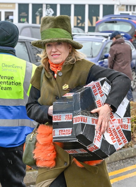 Race going fans arrive at a soggy day one of the Cheltenham Racing Festival at Prestbury Park in Cheltenham, England, Credit:Jules Annan / Avalon