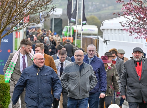 Race going fans arrive at a soggy day one of the Cheltenham Racing Festival at Prestbury Park in Cheltenham, England, Credit:Jules Annan / Avalon
