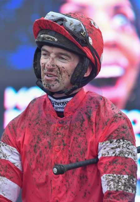 Jockies return covered in mud after racing at day one of the Cheltenham Racing Festival at Prestbury Park in Cheltenham, England, Credit:Jules Annan / Avalon