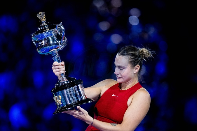 Info - Suicide de l'ancien joueur de NHL, Konstantin Koltsov, compagnon d'Aryna Sabalenka - Aryna Sabalenka (RUS) - A.Sabalenka remporte la finale de l'Open d'Australie face à Z.Qinwen (6-3, 6-2) à Melbourne, le 27 janvier 2024. © Virginie Bouyer / Panoramic / Bestimage A.Sabalenka with the trophy, trophy, womens singles, award ceremony, presentation, Australian Open 2024, Melbourne Park, Melbourne