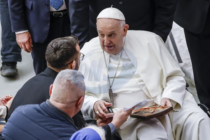 Pope Francis during the general audience at Paul VI hall in Vatican on March 27, 2024., Credit:Riccardo De Luca / Avalon