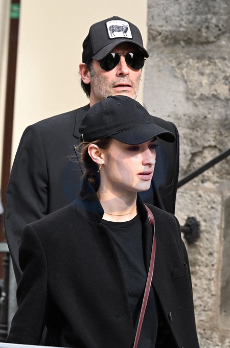 Anthony Delon et sa fille Liv - Arrivées aux obsèques de Jean-Yves Le Fur en l'église Saint-Roch à Paris, le 6 avril 2024. The funeral of Jean-Yves Le Fur at the Saint-Roch church in Paris, April 6, 2024.