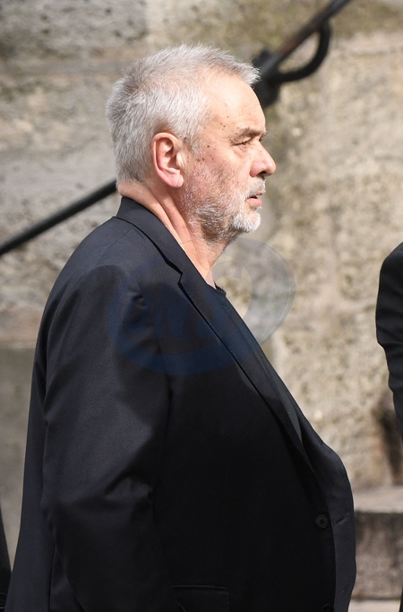 Luc Besson - Arrivées aux obsèques de Jean-Yves Le Fur en l'église Saint-Roch à Paris, le 6 avril 2024. The funeral of Jean-Yves Le Fur at the Saint-Roch church in Paris, April 6, 2024.