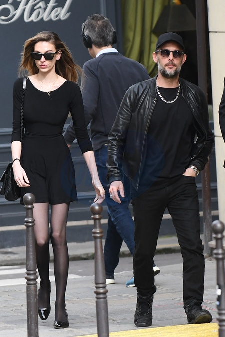Nicolas Duvauchelle et sa compagne Chloé Roy - Arrivées aux obsèques de Jean-Yves Le Fur en l'église Saint-Roch à Paris, le 6 avril 2024. The funeral of Jean-Yves Le Fur at the Saint-Roch church in Paris, April 6, 2024.