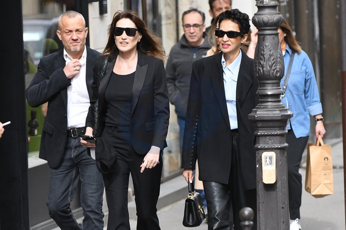 Carla Bruni et Farida Khelfa - Arrivées aux obsèques de Jean-Yves Le Fur en l'église Saint-Roch à Paris, le 6 avril 2024. The funeral of Jean-Yves Le Fur at the Saint-Roch church in Paris, April 6, 2024.