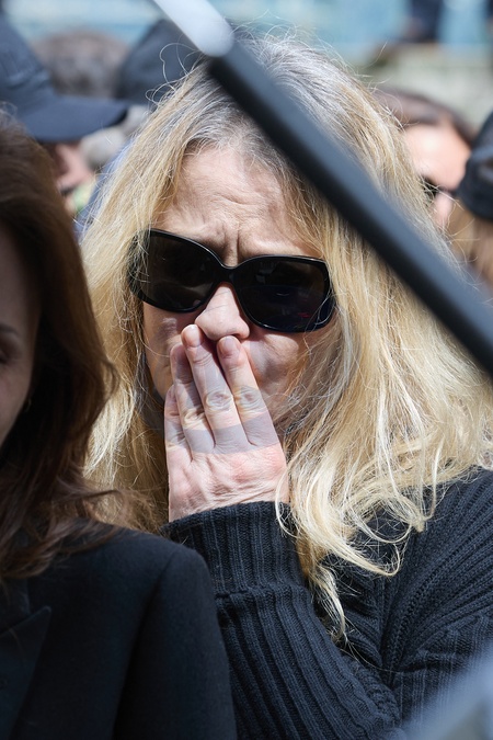 Karen Mulder - Sortie des obsèques de Jean-Yves Le Fur en l'église Saint-Roch à Paris, le 6 avril 2024. © Cyril Moreau-Dominique Jacovides/Bestimage Funeral ceremony for French businessman Jean-Yves Le Fur at Saint Roch Church in Paris, France on April 6, 2024. Jean-Yves Le Fur was a businessman invested in the world of media, died at the age of 59 due to pancreatic cancer. He was former fiance of Princess Stephanie of Monaco and has a son, Diego with French actress and director Maiwenn, and was K.Moss's godfather at her wedding to J.Hince.