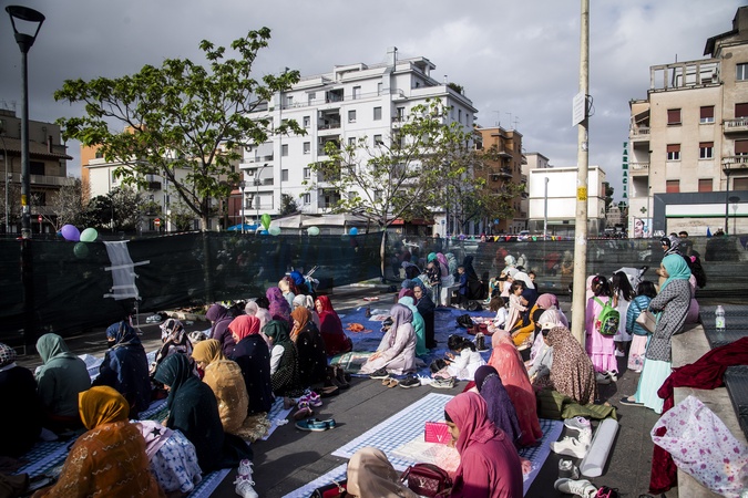 Muslim devotees pray for the end of Ramadan, Rome - Italy 10 April 2024