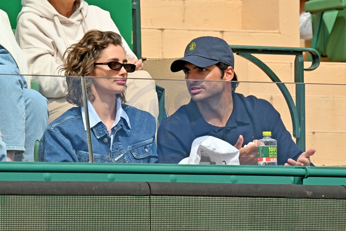 Rebecca Donaldson et son compagnon Carlos Sainz - People dans les tribunes de l'Open de Tennis "Masters 1000 de Monte-Carlo" à Roquebrune Cap Martin. Le 10 avril 2024 © Bruno Bebert / Bestimage People at the "Monte-Carlo Masters 1000” Tennis Open in Roquebrune Cap Martin. April 10, 2024.