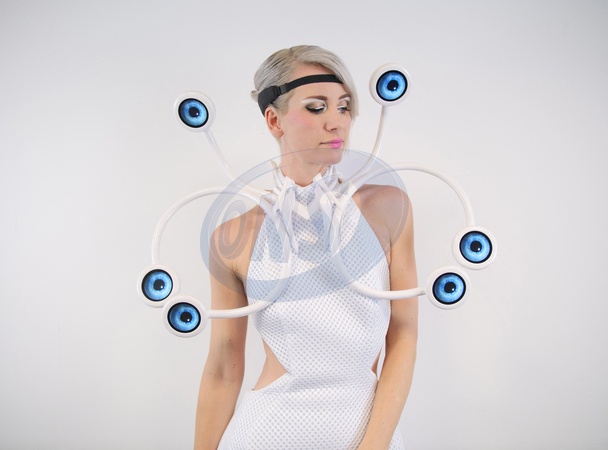 Pictures must credit: Anouk Wipprecht A mind-controlled 3D-printed dress offers the ultimate in personal fashion — thanks to built-in displays that respond to the wearer's brain waves. Called Screendress, it was created by Dutch fashion tech designer Anouk Wipprecht. It incorporates a brain interface that measures cognitive load in real-time, this dress shows you how much stimulus the brain gets at any given time. The term 'cognitive load' refers to the amount of information our working memory can process at any moment. The dress shows the wearer's cognitive load to the outside world. Fashion becomes a new kind of interconnection controlled by subconscious signals from the wearer's brain. These signals are picked up using a new cutting-edge EEG sensor contained in a headband that forms a wearable brain-computer interface. The interface uses machine-learning to determine the mental workload of the wearer. The workload is then reflected in real time on the six circular displays flaring out from the dress's sculpted neckpiece. As the wearer's mental workload increases , each display shows an iris and pupil dilating wider and wider. Picture supplied by JLPPA