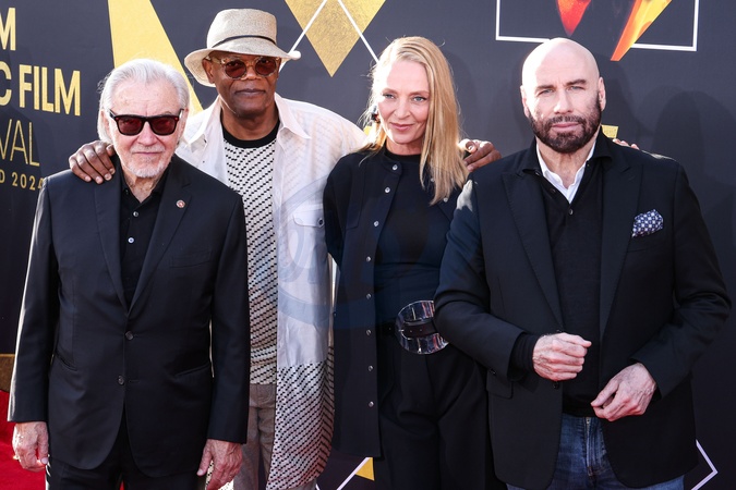 HOLLYWOOD, LOS ANGELES, CALIFORNIA, USA - APRIL 18: Harvey Keitel, Samuel L. Jackson, Uma Thurman and John Travolta arrive at the 15th Annual TCM Classic Film Festival 2024 Opening Night And 30th Anniversary Presentation Of Miramax's 'Pulp Fiction' held at the TCL Chinese Theatre on April 18, 2024 in Hollywood, Los Angeles, California, United States., Credit:Xavier Collin / Avalon