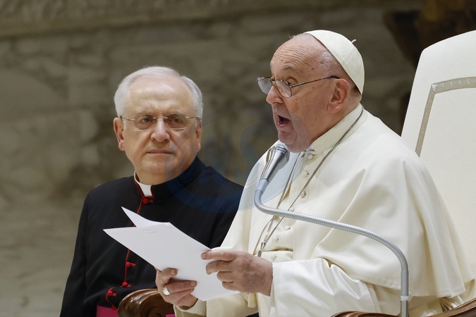Audiencja Papieża Franciszka z uczniami i nauczycielami Krajowej Sieci Szkół Pokoju w Sali Pawła VI. Watykan, 19 kwietnia 2024 r.”
