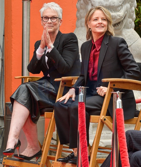 HOLLYWOOD, LOS ANGELES, CALIFORNIA, USA - APRIL 19: Jamie Lee Curtis and Jodie Foster attend the 15th Annual TCM Classic Film Festival 2024 - TCM Hosts Handprint And Footprint Ceremony Honoring Jodie Foster held at the TCL Chinese Theatre IMAX Forecourt on April 19, 2024 in Hollywood, Los Angeles, California, United States., Credit:Image Press Agency / Avalon