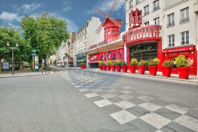 Epidémie de Coronavirus (Covid-19) - Illustration de Paris avant la levée du confinement, Paris, le 8 mai 2020. © Marc Ausset Lacroix / Bestimage Coronavirus epidemic (Covid-19) - Illustration of Paris before the ending of the lockdown, Paris, May 8, 2020. Le Moulin Rouge- Illustrations à Paris quelques jours avant la levée du confinement lors de l'épidémie de coronavirus (COVID-19),Paris le 09 Mai 2020 (Photo by: Marc Ausset-Lacroix/Bestimage)