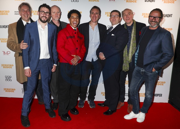 Alex Tate, Harvey Ascott, Aidan Kelly, Zack Morris, William Gilbey, Chris Reilly, Simon Kunz and Mark O'Sullivan at the Jericho Ridge Premiere at Curzon Soho in Soho, London, United Kingdom on 25 April 2024., Credit:Cat Morley / Avalon