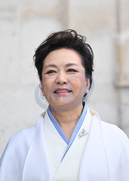La Première Dame Peng Liyuan lors de la cérémonie d'accueil officiel à l'Hôtel national des Invalides à Paris, France, le 6 mai 2024. © Jacques Witt/Pool/Bestimage Chinese First Lady Peng Liyuan, attend the official welcoming ceremony, as part of the Chinese President's two-day state visit, at The Invalides in Paris on May 6, 2024.