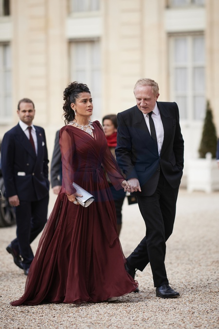 Salma Hayek et son mari François-Henri Pinault - Arrivée des invités au dîner d'Etat en l'honneur du président chinois Xi Jinping et de sa femme la Première Dame Peng Liyuan au palais présidentiel de l'Elysée à Paris, France, le 6 mai 2024. © Cyril Moreau/Bestimage Celebs arrive to attend an official state dinner as part of the Chinese president's two-day state visit to France, at the Presidential Elysee Palace in Paris, France, on May 6, 2024.