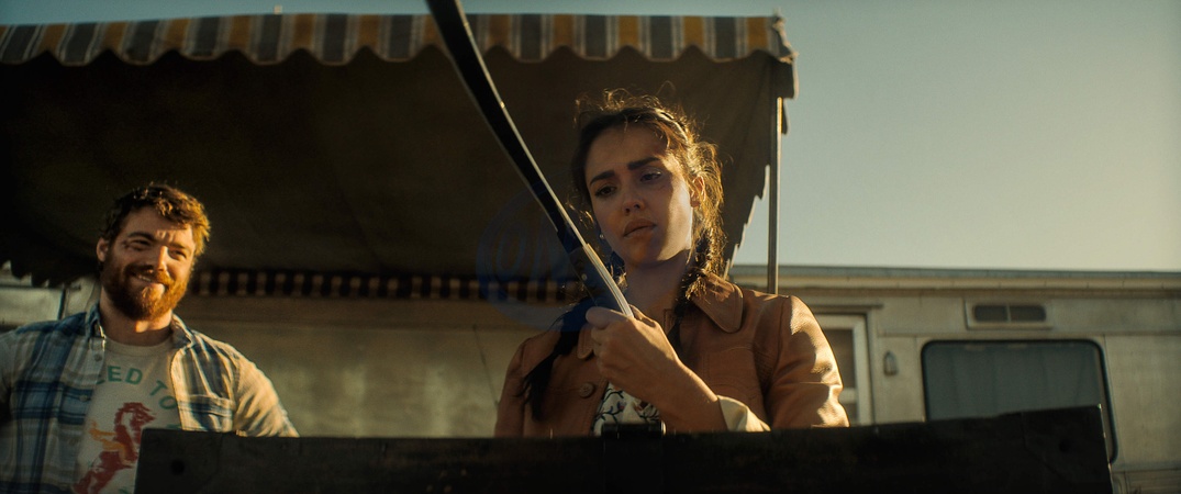Gabriel Basso, Jessica Alba, "Trigger Warning" (2024)., Credit:Netflix / Avalon