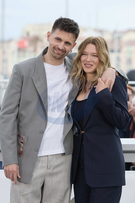 Raphaël Quenard et Léa Seydoux - Photocall du film "Le deuxième acte", présenté hors compétition, lors du 77ème Festival International du Film de Cannes (14 - 25 mai 2024), le 15 mai 2024. Photocall of "The Second Act", presented out of competition, during the 77th Cannes International Film Festival (May 14 - 25, 2024), May 15, 2024.