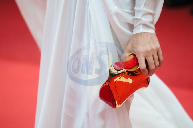 Elsa Zylberstein arrives on the Red Carpet for the premiere of Furiosa : A Mad Max Saga during the 77th Festival de Cannes on Wednesday 15 May 2024 at Le Palais des festivals, Cannes. Fashion Detail - Metalic Handbag., Credit:Julie Edwards / Avalon