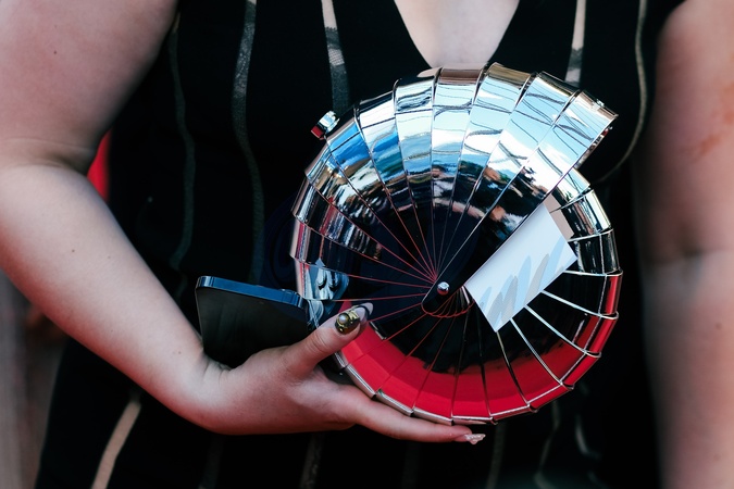 Guest photographed on the Red Carpet for the World Premiere of Francis Ford Coppola's Megalopolis during the 77th Festival de Cannes on Thursday 16 May 2024 at Le Palais des festivals, Cannes. Fashion Detail - Metalic Handbag., Credit:Julie Edwards / Avalon